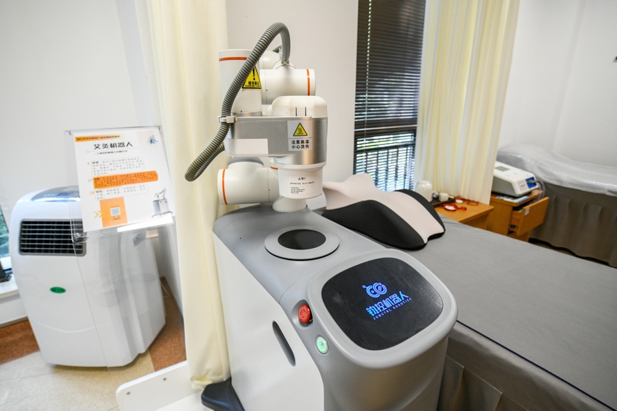 图为艾灸理疗机器人。/文汇报记者邢千里摄