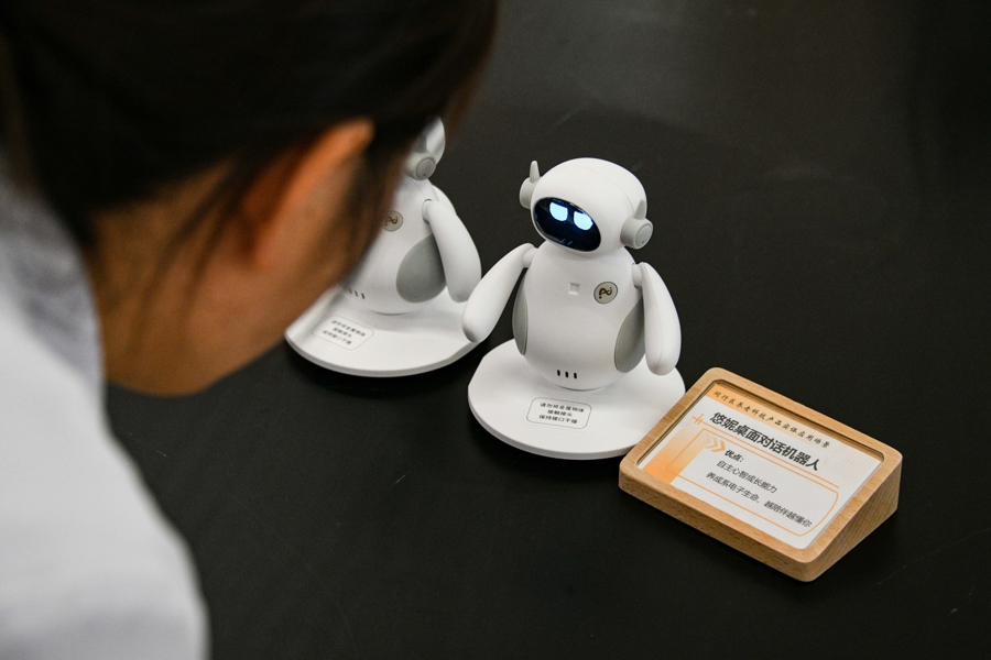 图为养老院内使用的桌面对话机器人。/文汇报记者邢千里摄
