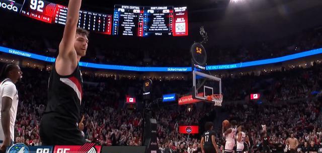 爱德华兹造犯规连续罚球命中,香农外线后撤步三分再中个人砍下10分!克林根外线三分轰炸篮筐锁定优势,三节战罢,开拓者95-88领先7分,爱德华兹31分苦苦支撑!